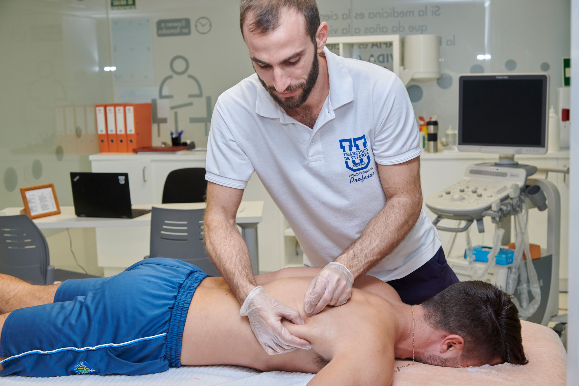 En nuestra Universidad Francisco de Vitoria, los pasados 12 y 13 de octubre, se celebran Campeonatos Universitarios. Multitud de universidades acuden a nuestro polideportivo, para disputarlos. Nosotros, como Grado de Fisioterapia, brindamos apoyo con nuestros alumnos a los jugadores, que sufrían algún tipo de lesión, sobrecarga o, realizando masajes precompetición.