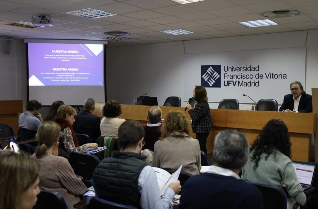On November 12, as part of Madrid’s Science and Innovation Week, the Virtue and Values Education Center (VEC) at Universidad Francisco de Vitoria held the session “From Connection to Reflection: How to Educate in Cyber-Wisdom and Character,” led by Juan Luis Gómez Gutiérrez and Verónica Fernández, Director of the VEC.