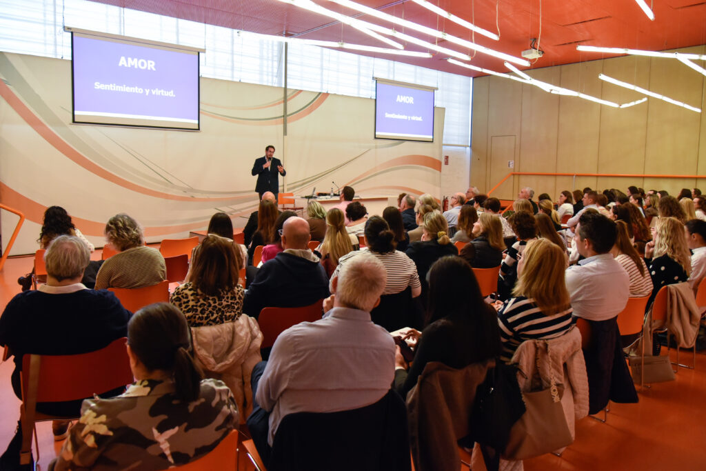 On November 15, a hundred Religion teachers from the Region of Murcia gathered at the El Batel Auditorium to attend the session “From Emotion to Virtue: Educating for Authentic Happiness,” delivered by Ricardo Ramírez Majadas, counselor at GOE and representative of the Virtue and Values Education Center at Francisco de Vitoria University.