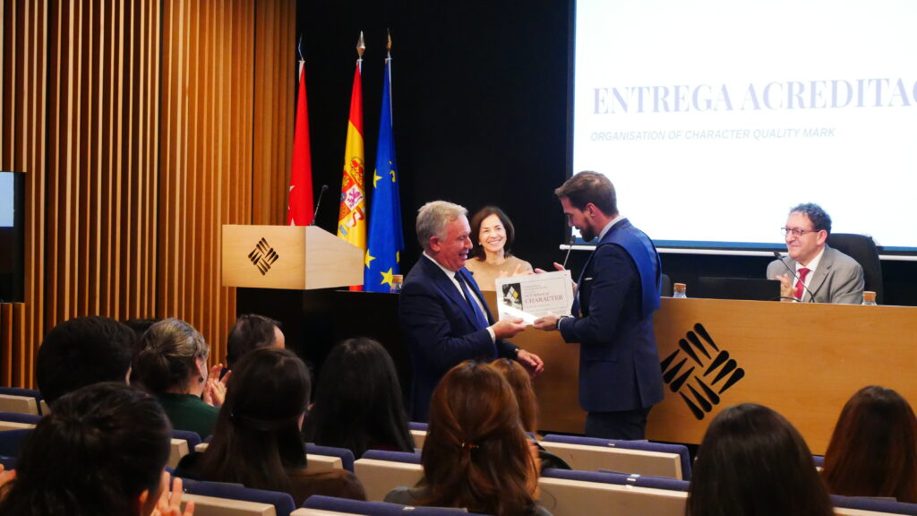 This recognition certifies the quality of the work carried out by the Colegio Mayor in the field of character education and the integral formation of students. The process included a review of its educational programmes, institutional culture and educational practices aimed at the development of virtues and values.